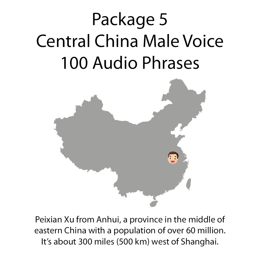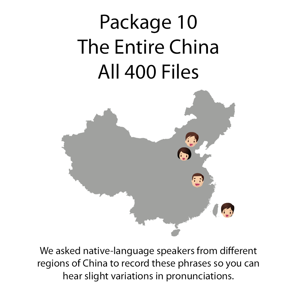 Le pedimos a hablantes nativos de diferentes regiones de China que grabaran estas frases para que puedan escuchar ligeras variaciones en las pronunciaciones. Es posible que desees aprender la pronunciación "estándar" adecuada, pero el idioma lo hablan personas reales con acentos y modales que no son "estándar". Para hablar chino como un hablante nativo, es necesario escuchar cómo hablan las personas de diferentes regiones de China. Incluso en Beijing, uno de cada tres residentes permanentes procedía de fuera de Beijing. Escuchar nuestras grabaciones te preparará para comunicarte bien con los chinos, incluso si tienen acento.