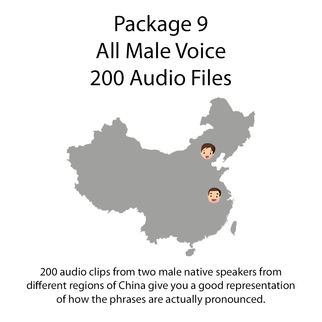 400 clips de audio: escuche pronunciaciones auténticas de cada frase grabadas por 4 hablantes nativos de chino diferentes. Dos de Beijing (norte de China, tanto hombres como mujeres), 1 de Anhui (centro de China, hombres) y 1 de Taiwán (sur de China, mujeres).