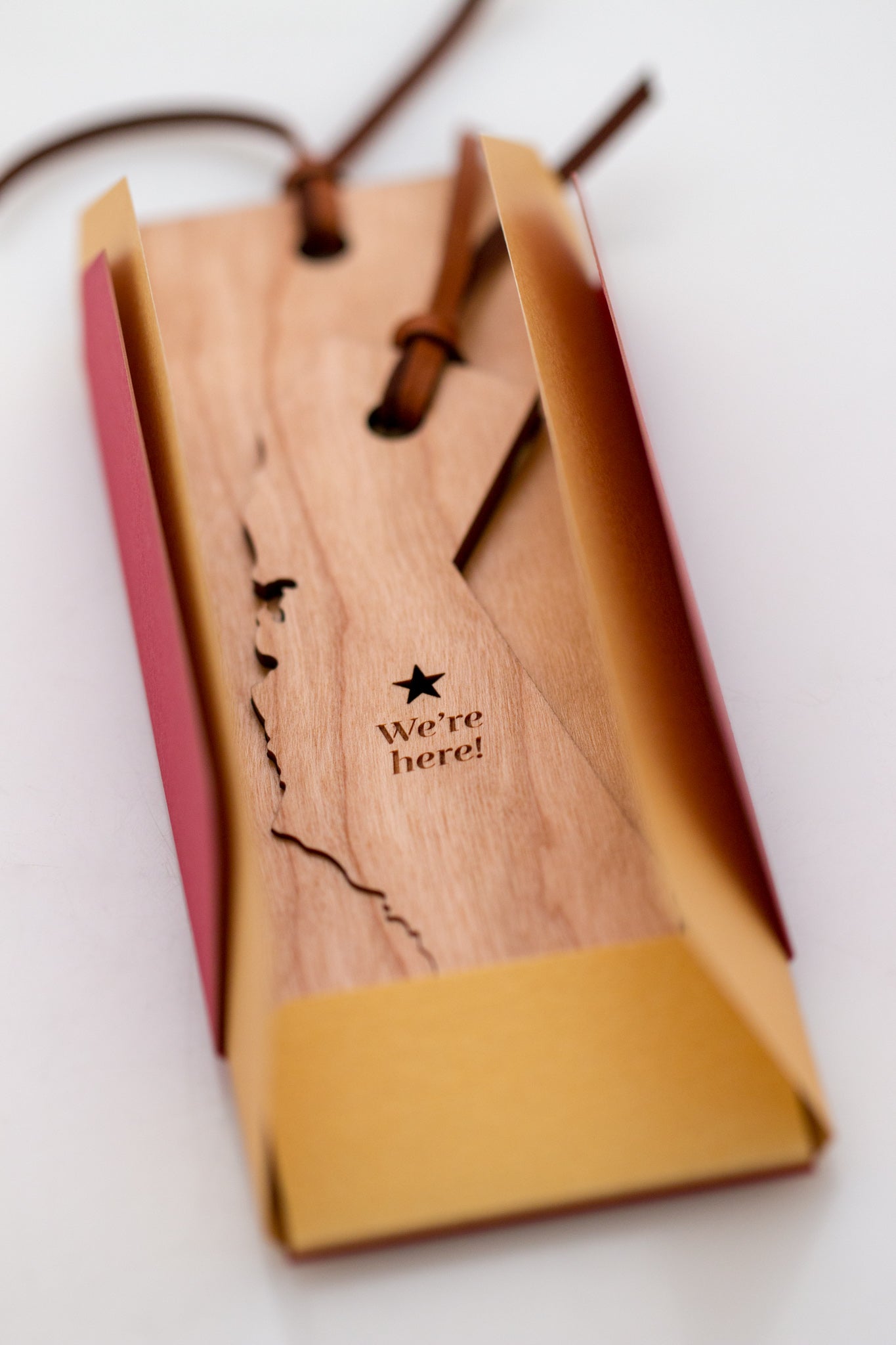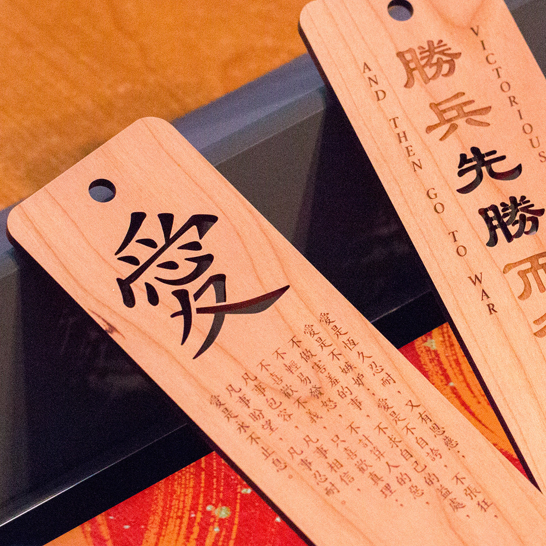 Tamaño: 5,9” x 2” x 1/8” (15 cm x 5 cm x 3 mm). Diseñado y grabado por Good Characters en el centro de California, Estados Unidos. Madera dura de cerezo americano sostenible de las Montañas Apalaches en el este de América del Norte. Exclusivamente en goodcharacters.com